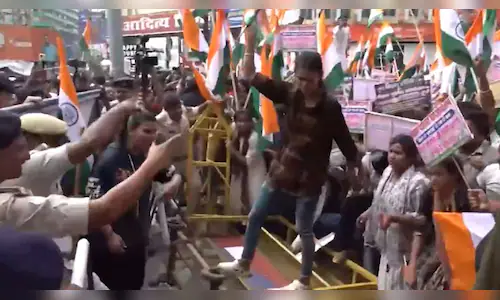 The protesting students gathered near Dak bungalow crossing in Patna and raised slogans against the government. They also breached the security barricades following which the Bihar Police started charging at them, news agency PTI reported.