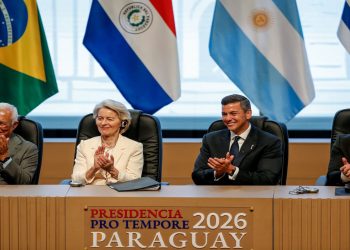 European Council President Antonio Costa, European Commission President Ursula von der Leyen, Paraguayan President Santiago Pena and Argentine President Javier...