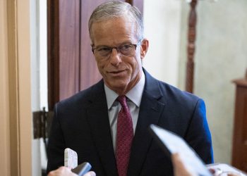 The head of the majority of the American Senate, John Thune, a republican of the southern Dakota, talks to journalists...