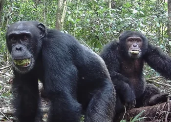 In the forests of Uganda and Côte d'Ivoire, chimpanzees Crush in figs and plums, delighting sweet, soft and just a...