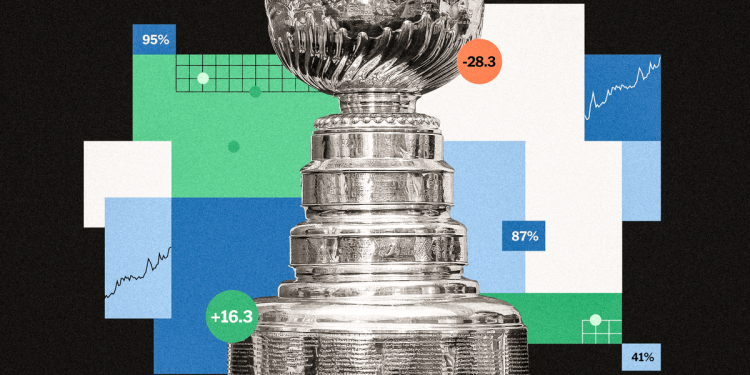 Welcome to our NHL 2025-2026 projections where you will find the total projected points of each team, the probability of qualifying for the playoffs and the chances of winning the Stanley Cup. The projections are based on 50,000 simulations of the rest of the season which take into account the projected force of each team, the current health and the solidity of the calendar. All projections are rounded to the closest whole number. You can find out more about the model at the bottom of the page. The projections will be updated daily.