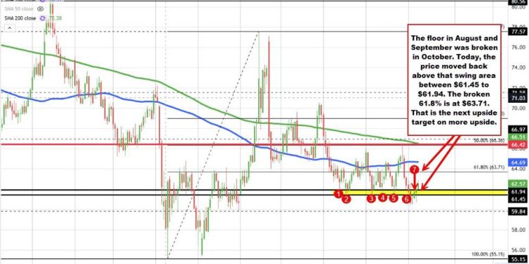 For sellers, it would be necessary to get back below the old floor area between $61.45 and $61.94 to give them firm control from a technical perspective.