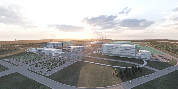 A rendering of the manufacturing installation of Eli Lilly in Houston, Texas.