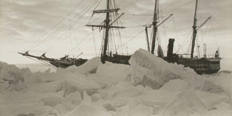 Endurance in the Weddell Sea, near Antarctica. The ship was stuck and was crushed by ice.
