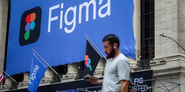 Figma’s signaling appears on the New York Stock Exchange in New York while the company is preparing to make its actions begin to negotiate on July 31, 2025.