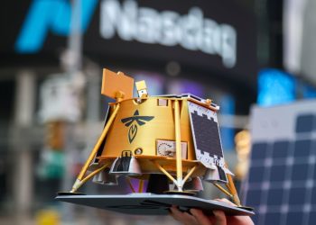 Read moreDetailsA model from Lander Blue Ghost Lander of Firefly Aerospace during the company's initial public offer at Nasdaq MarcharsSite in...