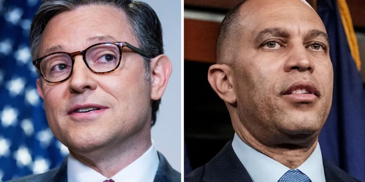 The American president of the House Mike Johnson (R-La) and the Chamber of American Representatives The Democratic Manager Hakeem Jeffries (D-NY).