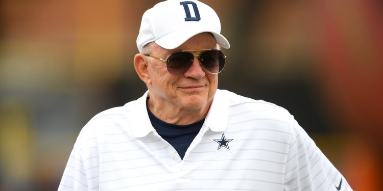 Owner Jerry Jones of the Dallas Cowboys attends training camp at the River Ridge Complex in Oxnard, California on July 24, 2021.