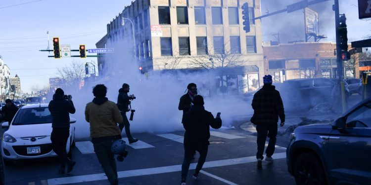 U.S. Customs and Border Protection agents disperse tear gas during a patrol as they seek to arrest undocumented people during immigration enforcement activities in Minneapolis, Minnesota, January 12, 2026.