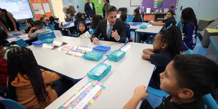 Newsom focused on the benefits of state initiatives including transitional kindergarten, free school meals for all and increased funding for before and after school programs and literacy coaches. He also highlighted the new reading bill, which he officially signed Thursday at a Los Angeles elementary school.
