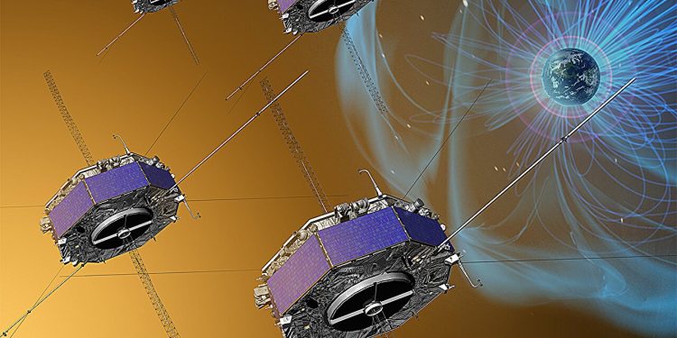 NASA’s Multi-Scale Magnetospheric Mission, consisting of four spacecraft, is collecting information on magnetic reconnection around Earth. Credit: NASA/GSFC