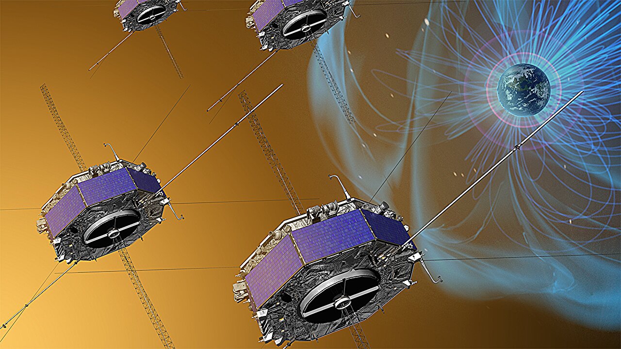 NASA’s Multi-Scale Magnetospheric Mission, consisting of four spacecraft, is collecting information on magnetic reconnection around Earth. Credit: NASA/GSFC