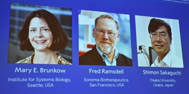 Stockholm – Mary E. Brunkow, Fred Ramsdell and Shimon Sakaguchi won the Nobel Prize in Medicine on Monday for their discoveries concerning peripheral immune tolerance.