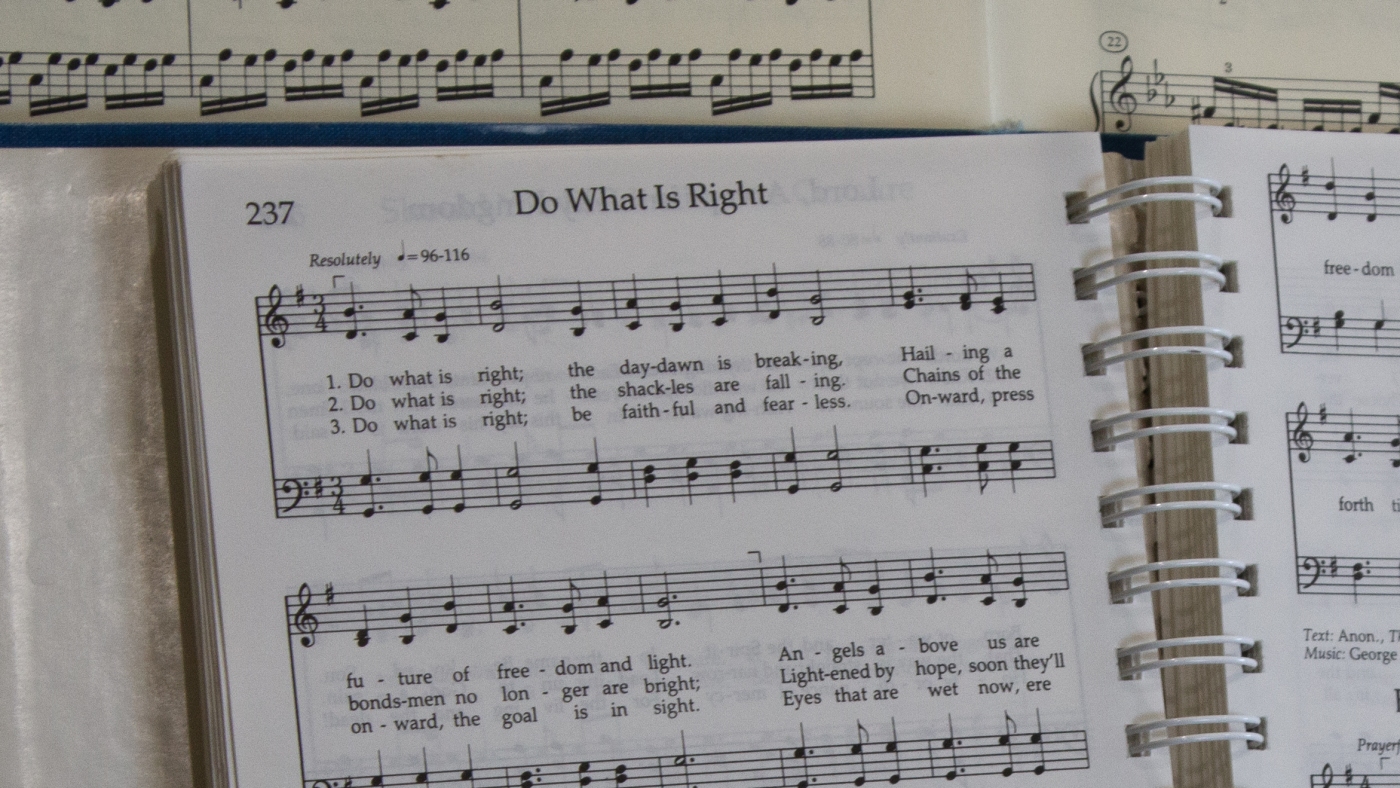 This hymn, here at the piano of one of the leaders of Mormon Women for Ethical Government, is cited as a source of inspiration by one of the plaintiffs in the case that forces Utah legislators to carry out redistricting.