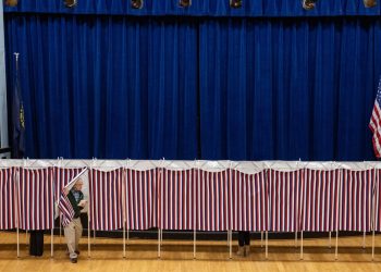 A man left a vote in a polling station in Lancaster, NH, on election day, November 5, 2024. Joseph Prezioso ...