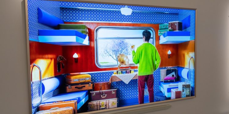 When you’re not watching it, the TV switches to “art mode” and cycles through a gallery of famous paintings, which look a little more like real works of art on its matte screen than they would on an LED or OLED screen.