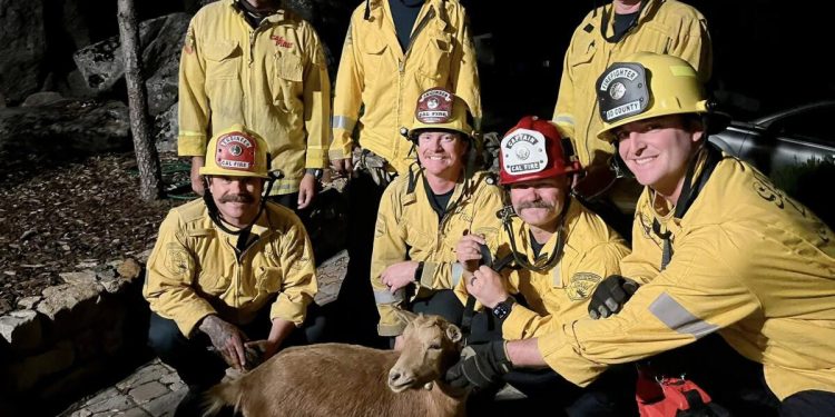 Friday evening, firefighters from Cal Fire San Diego County responded to a call for goat rescue on a farm in a rural area of Descanso. The task was not simple, given the size and weight of the rocks between which the animal had been closely pinned.