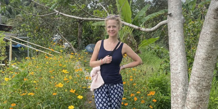 The author of a visit to an island in the Mekong Delta, in Vietnam.