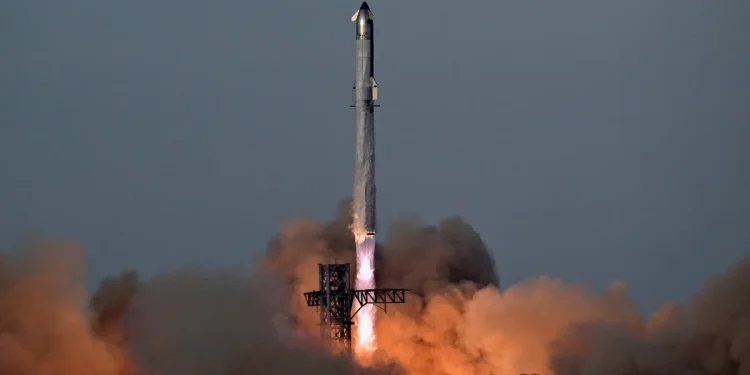 The mission began when the 33 raptor engines fed by the super heavy methane broke out with a roar of the earth and an ignited exhaust rush at 7:30 pm, majestically pushing the 40 -storey rocket of the 40 -storey rocket of the Starbase installation of SpaceX on the coast of Texas Gulf.