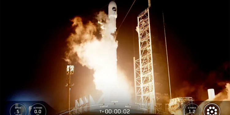 Lighting the night sky for miles away on foot, the Falcon 9 moved away from the historic 39a pad at Kennedy Space Center at 11:50 p.m. Hae, arcant on a northeast trajectory at the top of 1.7 million pounds of push of the nine first-stage engines of the booster.