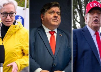 From left to right: Oregon Governor Tina Kotek, Illinois Governor JB Pritzker, President Trump. Oregon and Illinois continue the Trump ...