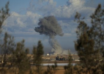 The smoke rises above the Gaza Strip after an Israeli bombardment seen in a position near the Kfar Aza Kibbutz ...