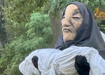 A puppeteer plays a grieving mother in Gaza during a performance of Our ongoing inner resurrection revolution! in Ypsilanti, Mich. ...