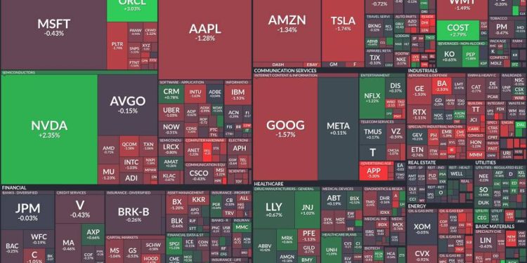 - The main consumer giants like Amazon (AMZN) And Apple (AAPL) are facing declines of 1.34% and 1.28%, respectively, reflecting consumer demand challenges.