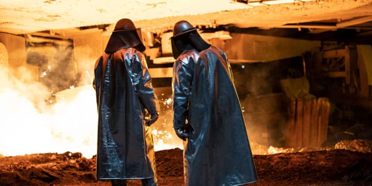 Steel worker at the top furnace of the Salzgitter Agérie AG on March 2, 2020 in Salzgitter, Germany.
