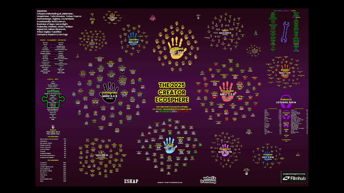 This year, we – me, FilmHub and Shira Lazar from What’s Trending – decided to map it. The creator economy has changed dramatically since the Paul brothers started Vines. Today, the Creator System is the largest marketing platform in the world. Creators are now businesses, and businesses are now creators. Everything important in our culture, including mainstream media like Wicked, barbie, Sinners — begin And ends on creator platforms.