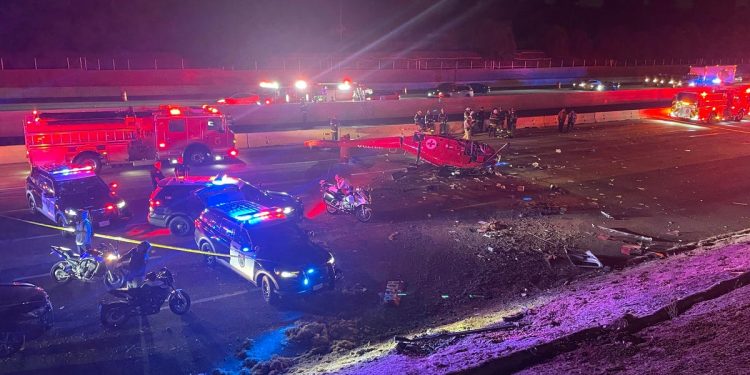 The Sacramento fire service said that a medical helicopter at hand had fallen shortly after 7 p.m. on motorway 50 in the direction is near 59th street.