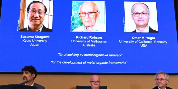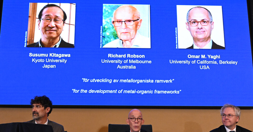 Susumu Kitagawa, Richard Robson and Omar Mr. Yaghi received the Nobel Prize in chemistry on Wednesday “for the development of metallo-organic structures”.