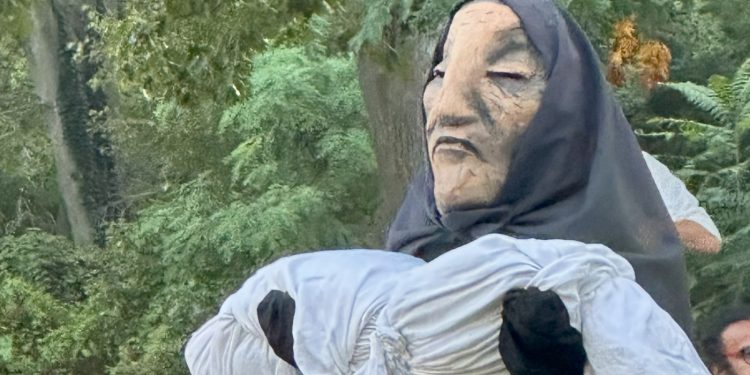 Rooted in the traditions of 14th-century plays, Bread and Puppet gives a contemporary gloss to medieval mystery cycles, with a tongue-in-cheek take on the biblical creation story, as well as sharp political sketches that Lampoon Greedy Greedaires, supports American labor unions and criticizes Russia’s invasion of Ukraine. The 2025 show is firmly pro-Palestinian, with a mourning puppet in a black abaya wearing a child-shaped shroud and performers waving flags bearing red poppies, a symbol of Palestinian loyalty to the land.