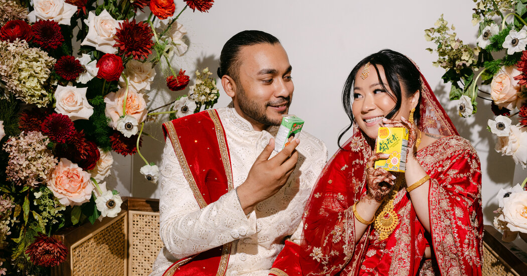 The celebration was a tapestry of their Banglades and Chinese cultures. Their four -feet long cake was made by a local Bangladaise bakery, oven Corners Co., and was decorated with dragon, guava, lychee and flowers. Their wedding favors were fans woven by Bangladais and Chinese fans. And the night ended with Trivia matches where the winners received money in red Chinese envelopes, followed by a truck of ice cream Mister Sofee.