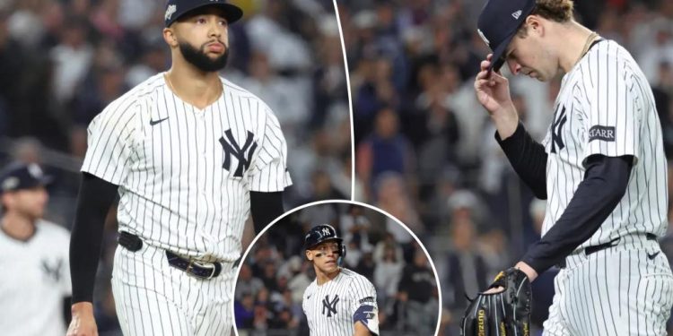 The Yankees offered one last gasp in the bottom of the eighth, loading the bases with two outs, only for Austin Wells to fly out to closer Jeff Hoffman.